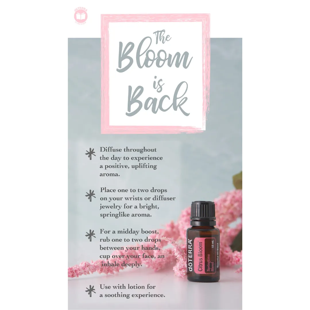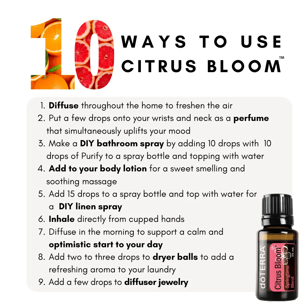 Citrus Bloom is a blend of Wild Orange, Grapefruit, Lavender, Roman Chamomile & Magnolia